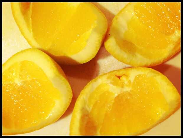 Lo primero que tienes que hacer es cortar la carne de la naranja y déjese con cáscaras de naranja solo.  Pasa nada si dejas un poco de la carne naranja por ahi, no cambia nada.