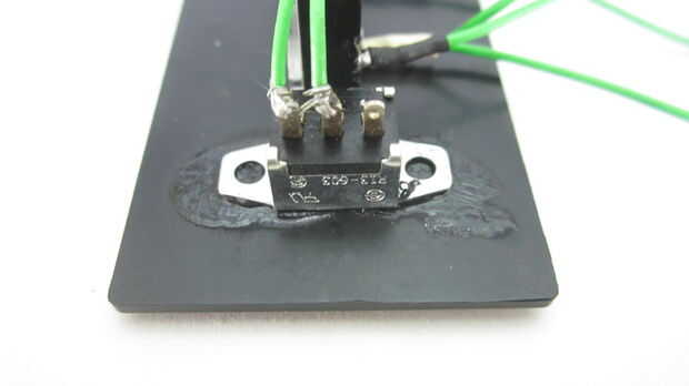 Los conectores del interruptor y el conector de alimentación fueron insertados en sus orificios y sujeta con los tornillos de montaje. El interruptor de modo se llevó a cabo en lugar con pegamento.