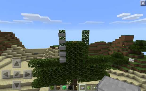 Ver el bloque de madera en la parte superior. Hacer una torre de altura a 5 cuadras de eso. Luego envolver con hojas por lo que parece otro cerdo en una manta. Si nos fijamos en la parte superior de la hoja de un lado, puede hacer una torre de 6 bloques. Hacer otro ojo y listo!