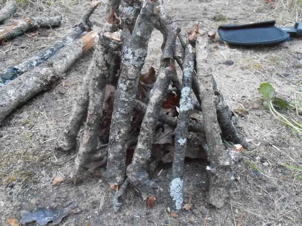 Hacer esto como si se tratara de un refugio, hacer un marco y construir sobre ella. Usar este diseño si fuese más tranquilo hacia fuera. El calor se levantan en los palillos y coger más rápido. A continuación añadir la yesca y leña en la parte inferior y luz desde la parte inferior.