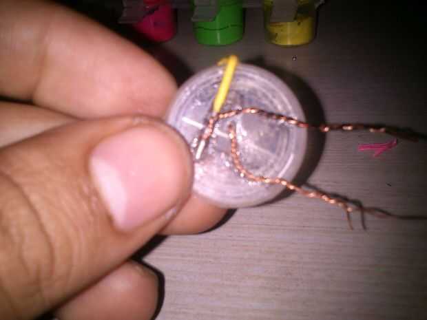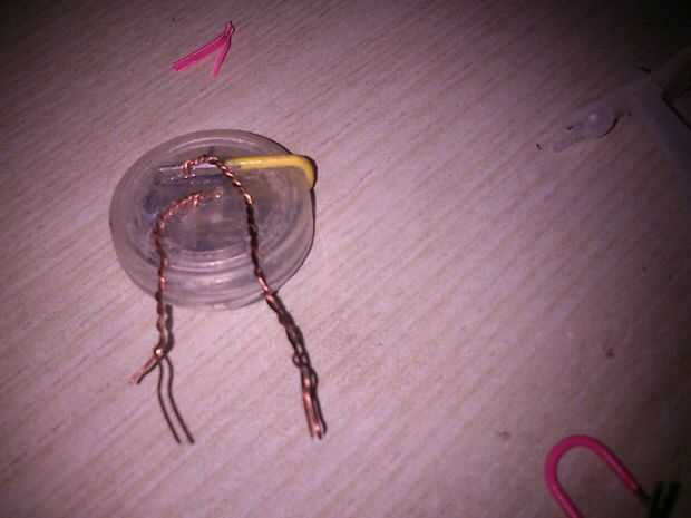4 realizar dos orificios y montar firmemente un alambre de metal hacer otro terminal.