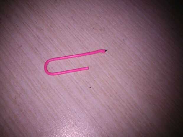 2 tome un clip y doblar de la manera como se muestra en la imagen.