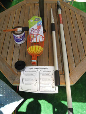 Al final, terminamos con dos recogedores de fruta mejorada: uno es más voluminosos pero más ligero y más fácil de tratar con ($26 para las piezas), el otro paquetes de hasta 3' de largo, es ligeramente más pesado, pero tiene una gran variedad (piezas coste aprox $68).