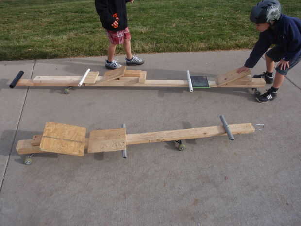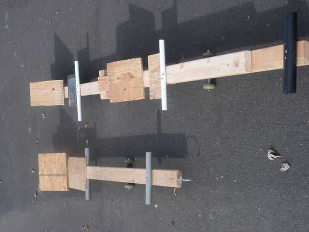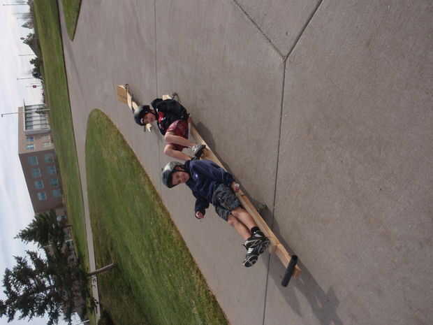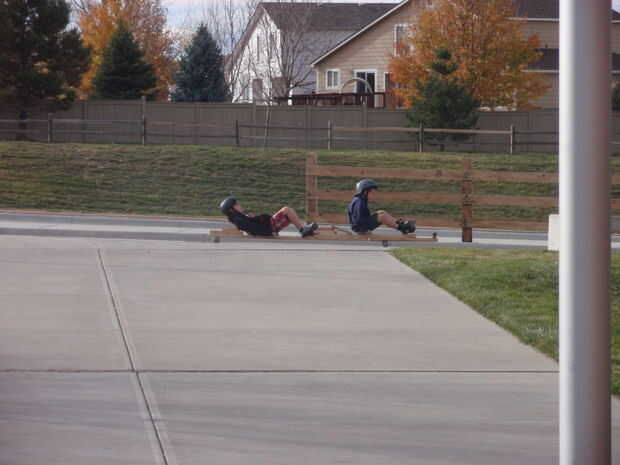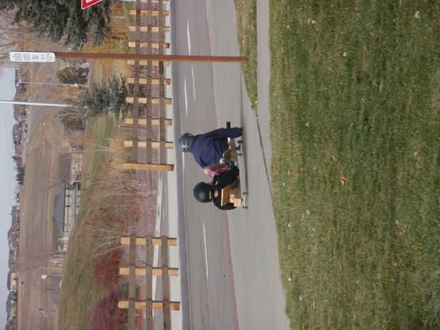 este es el segundo luge de la calle que he hecho. Los camiones se toman de un patín de $9, y he añadido viejas ruedas de roller-blade en ellos. Mi original va hasta 25 millas por hora, y creo que este va a ser la misma. (yo no puedo montarlo, ya que