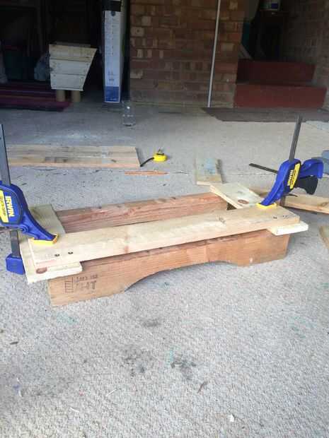 Fijamos las piezas de piso y mide a dos conteras y un medio que piezas sobre colgado ligeramente para permitir descansar en los lados y la pared y recoger los pies hemos querido utilizar