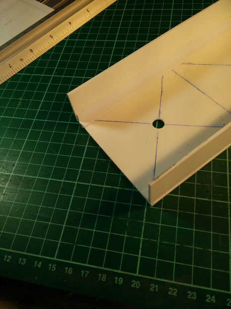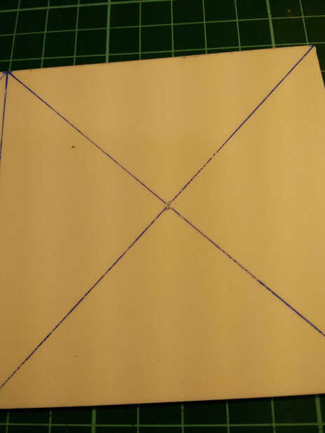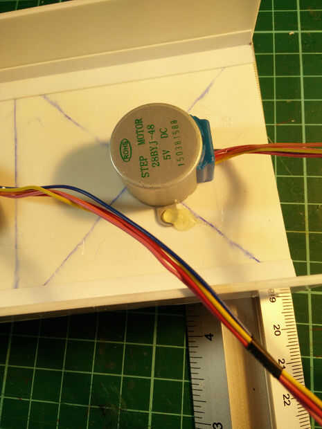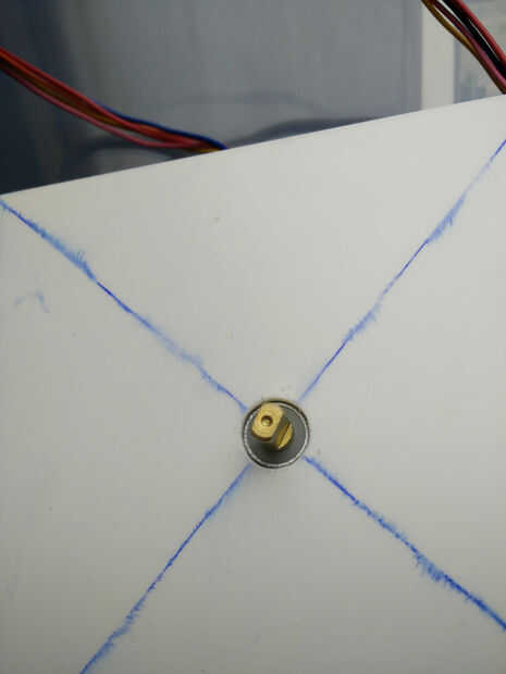 - Haga una marca donde se cruzan las líneas, donde se realizará el agujero para el eje de salida del motor paso a paso.