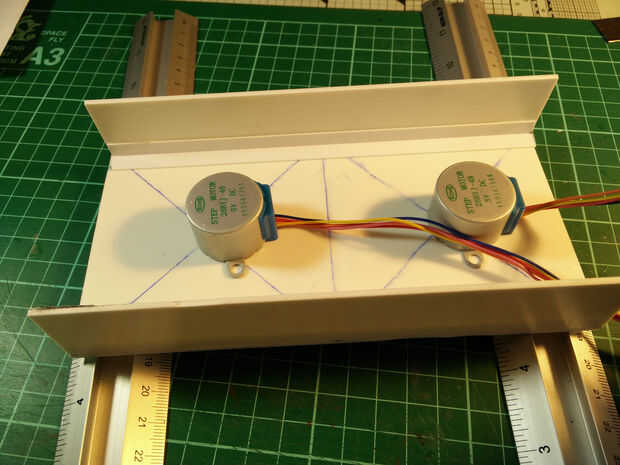 Este paso describe un método simple para marcar el centro y hacer los agujeros para montar los motores paso a paso.