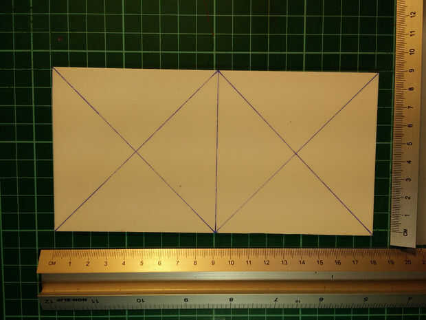 - Ahora trace una línea de esquina a esquina en cada mitad, esto debe crear una 'X' que cruza en medio de cada mitad.