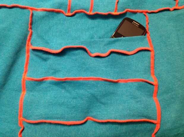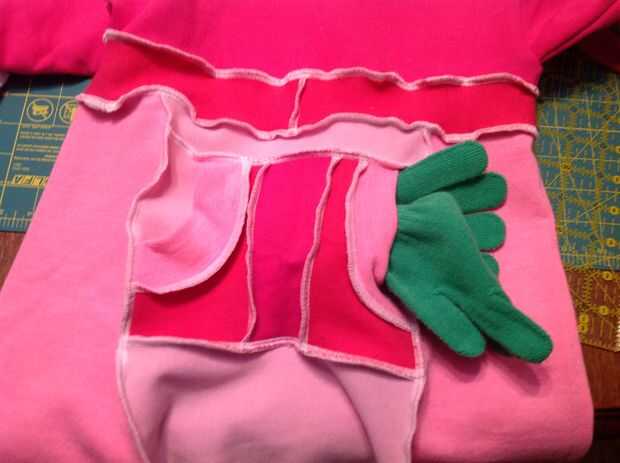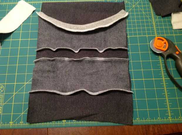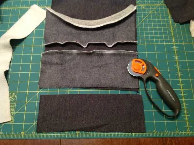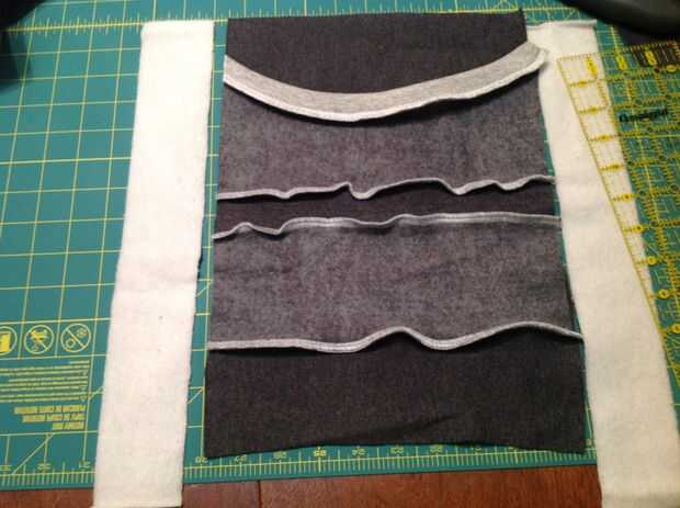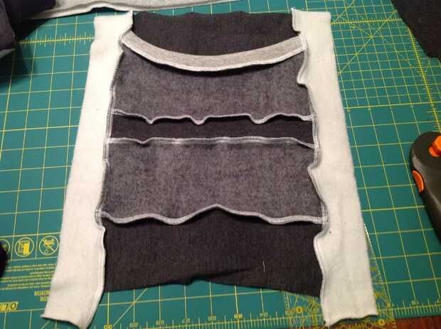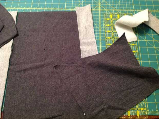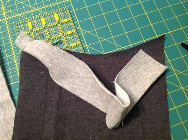 Si tiene el frente del bolsillo terminado, y la pieza inferior de la sudadera segundo cosida, colocar las dos tiras de la camiseta principal.