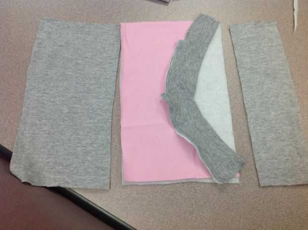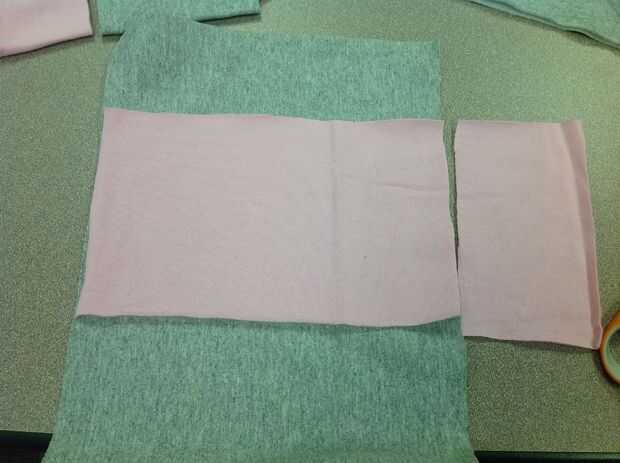 De izquierda a derecha sobre principal rectángulo sudadera, corte una tira para el bolsillo. Utilice el segundo rectángulo de sudadera para determinar las medidas.