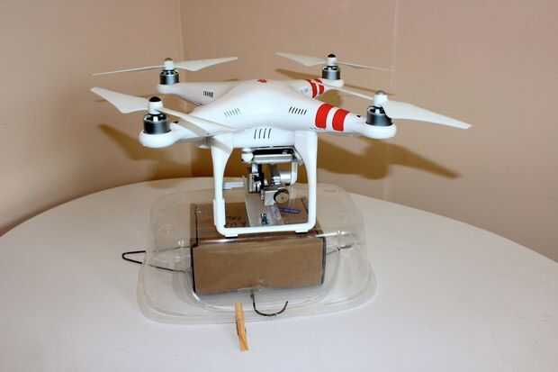 Mi DJI Phantom II + drone es el levantador de la energía de este Instructable, pero es posible adaptar el mismo sistema de entrega a otros zánganos. El helicóptero cuádruple no tenía ningún problema el PDC junto con una carga útil de casi una libra de elevación.