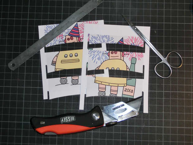Cortar la imagen de fondo como se muestra en la primera imagen y pegarlos uno encima del otro, poniendo pegamento en una de las imágenes como se muestra en la primera imagen (haga clic en la imagen para ver las anotaciones). Asegúrese de que la imagen está alineada derecha.