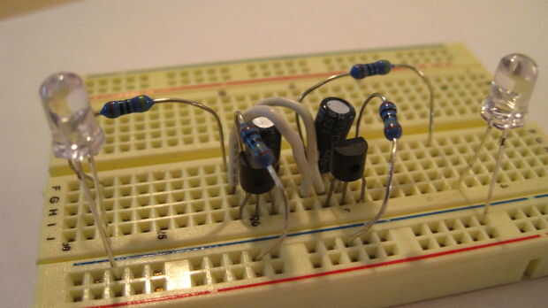 El doble led flasher es un proyecto de electrónica simple para principiantes.Usted puede comprar todos los componentes en línea, y tarda unos 30 minutos para todo en lugar de la soldadura.Al final obtienes un gadget poco agradable que alterna entre d