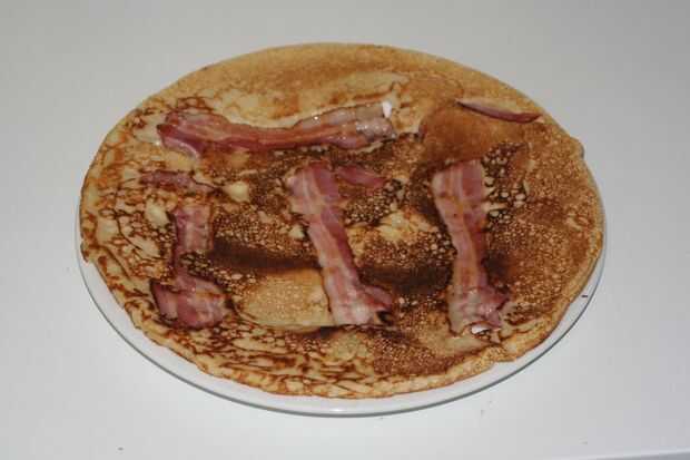 Calentar una sartén con poco de mantequilla o aceite y cocer el tocino en ella. Si es solo crujiente, sacar la mezcla y los pobres en la cacerola hasta que el tocino estén apenas cubierto. Hornear por un lado y que a su vez alrededor hasta que se doren por ambos lados.