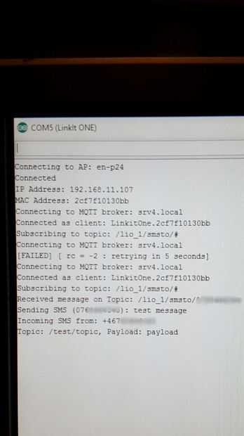Dos vías SMS MQTT puente (uno de Linkit) (2 / 3 paso)