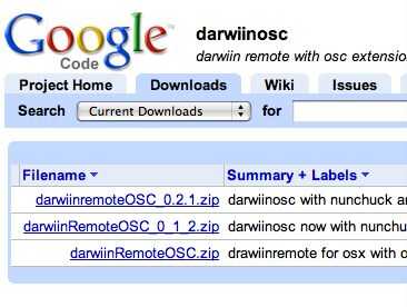 La primera cosa a hacer es descargar la versión OSC de DarwiinRemote que encontrarás en DarwiinRemote es un pequeño software que lee los datos desde y envía datos a Nintendo control remoto Wii (aka. Wiimote). Versión OSC de DarwiinRemote. Hay algunas versiones disponibles, así que asegúrese de que descargar la versión OSC de Google Code.
