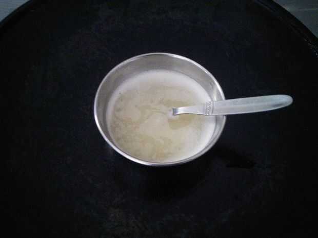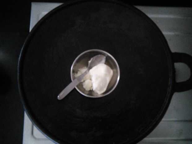 Primera cosa a hacer es derretir la mantequilla. La mantequilla debe ser derretida indirectamente al no tener contacto directo con la llama. Para que este mantenga la taza de mantequilla en la tava dosa y el calor, después de un tiempo la mantequilla obtiene derretida completamente este método previene la mantequilla contra el recalentamiento.