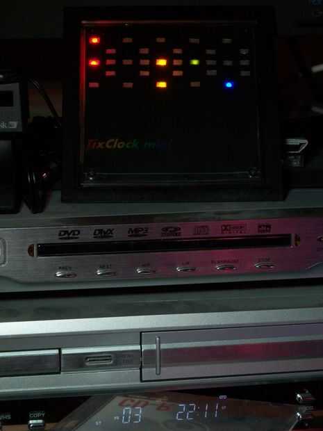 una matriz de LEDs cambia aleatoriamente patrones cada 10 segundos o menos. Para leer la hora, simplemente contar el número de puntos por dígitos. En la foto principal muestra el tiempo, 22:11. Diferentes colores se asignan a diferentes dígitos, rojo - 10 horas, horas ámbar, verde, 10 minutos, minutos azul. Usando 3mm superbrights significa que el reloj se puede leer durante el día o de noche (aunque se lavarían en plena luz del sol).