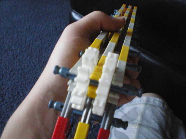 Este es mi escopeta. Y sí, tienen 2 barriles. Sólo se puede disparar rojo barras, o barras grises. 2 carneros. Sobre un pie de largo. Y brotes muy lejos dependiendo de bandas de goma por supuesto. También, la razón porque no publicar las instruccione