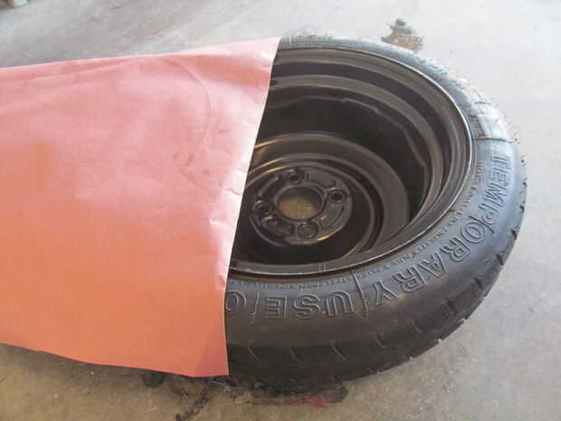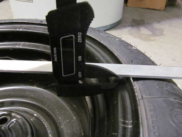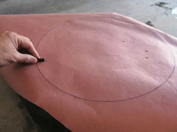 Para obtener una medida sólida coloqué papel sobre el borde y había trazado con un lápiz de cera. Usted puede encontrar grandes rollos de este papel en la sección de pintura de tiendas de mejoras para el hogar. A continuación se que recorte con tijeras. Ahora tenía el tamaño adecuado pero todavía necesitaba una medición de espesor del material. Para me puso un trozo de barra plana por todo el borde y medir la brecha con pinzas. ¼”.