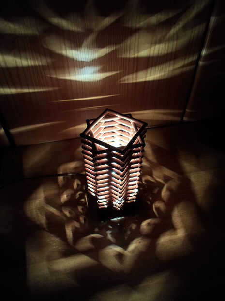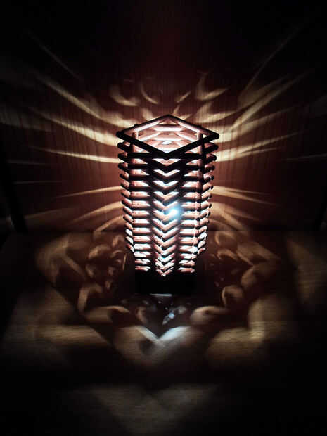Esta lámpara fue hecha como un "compañero" a la luz de espiga que hice hace un tiempo, la lámpara espiral. Como se puede ver, son muy similares y lo hice casi la misma es demasiado. Lo único que cambia es la forma de que los cuadrados se colocan para crear una geometría diferente.