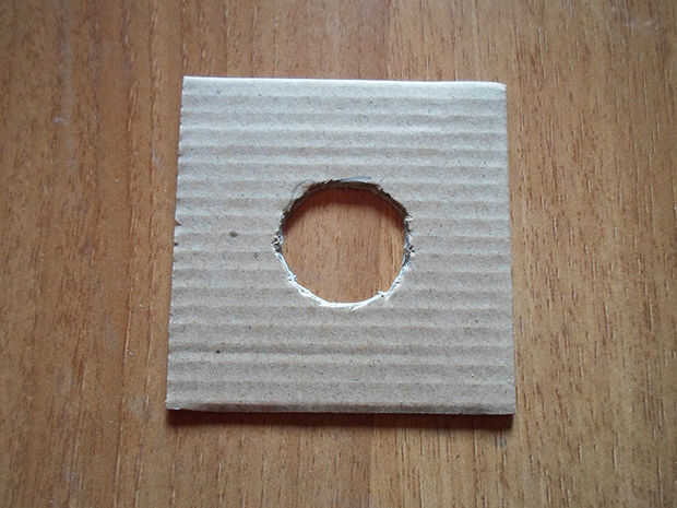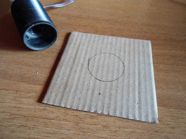 Esta manera su pedazo de cartón tendrá un agujero en el medio: que es donde tienes que colocar el portalámparas en el extremo.