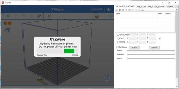 Una vez que ha seleccionado debe cargar el archivo del firmware. Debe aparecer la pantalla anterior que está cargando y después de 30 a 45 segundos debe reiniciar la impresora y se debe cargar el nuevo firmware.