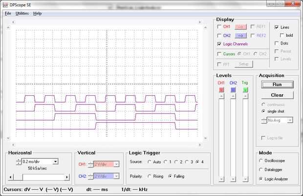 Con el SE DPScope he tratado de abordar todas estas cuestiones. Por supuesto el resultado final nunca puede competir con un alcance de Tektronix o Agilent profesional cuesta cien veces más, pero sigue siendo bueno para un gran número de aplicaciones.