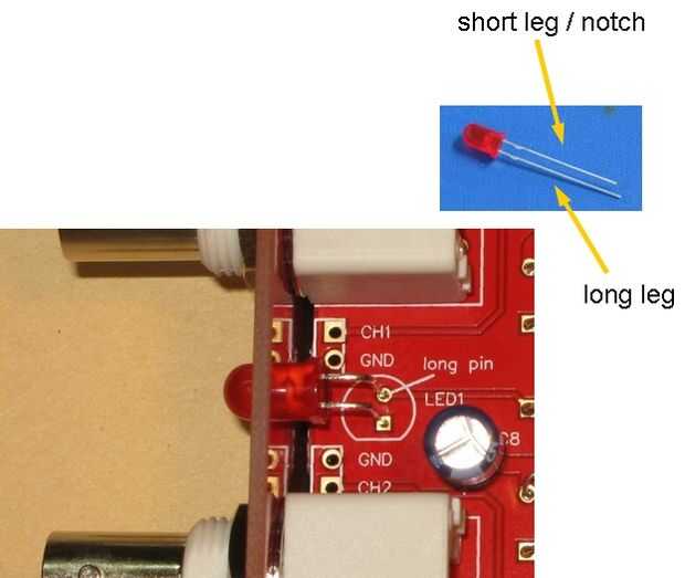 Asegúrese de que la pata larga del LED va en el lado donde la serigrafía indica ("pasador largo").