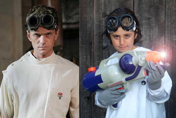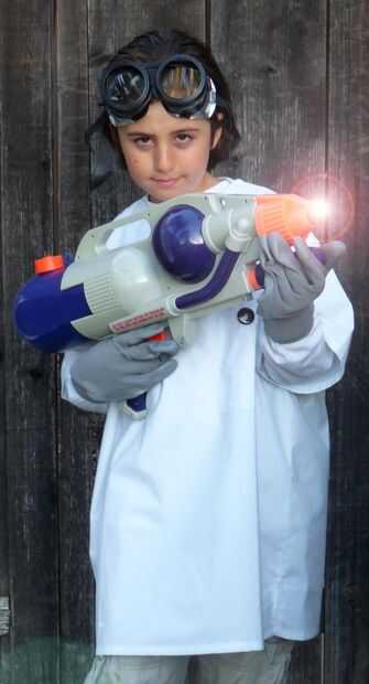 Usted usará la camisa de manga larga debajo de la capa de peelings o laboratorio. Si lo desea, puede usar plumas de tela para hacer la insignia del bolsillo. He utilizado un botón en su lugar. Guantes sobre las mangas largas. Pantalones meter en las botas.