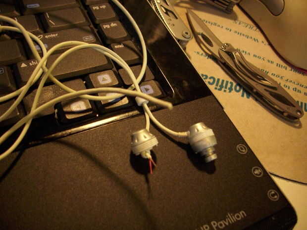 @ 1 par de audífonos roto, estoy razonablemente seguro que todos ustedes tienen uno de estos. Tengo en fin cuatro pares donde uno "bud" murió, así que moví a los auriculares... (También, consulta Estas otras!)