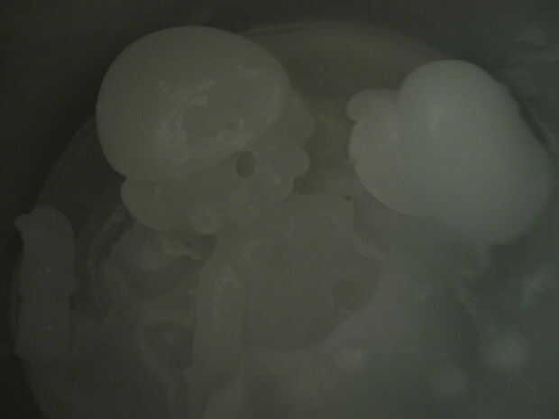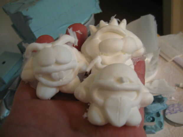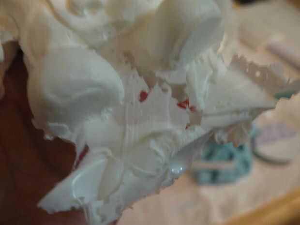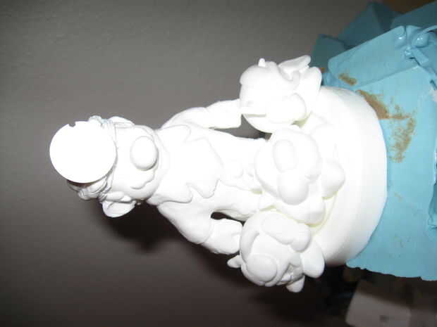 Una vez que el molde fue hecho, derramé en alguna mezcla de plástico de uretano y tuve una estatua plástica del Dr. Mario! Elegí la combinación de plástico blanco porque eso haría pintura fácil. También derramé el plástico para los virus en este momento. Lamentablemente, los cuernos de virus no funciona muy bien con el diseño de virus rojo y azul. Hice nuevos de barro, cocido al horno y super había pegado en lugar. (Pensé que después de todo fue pintado nadie notaba la diferencia, y tenía razón.)