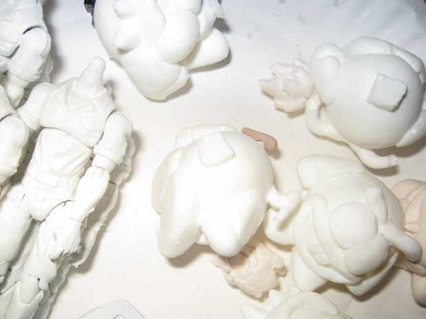 Para rellenar huecos de burbujas de aire, usé Jin Saotomepegamento estupendo truco. Funcionó muy bien. (Para mis figuras de acción, me di cuenta de una manera de reducir drásticamente las burbujas durante el colado, pero seguía siendo un problema leve).