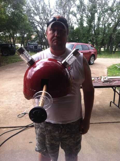 Tomar la cúpula y cortar un rectángulo de la parte delantera para el pedúnculo y dos círculos en la parte superior a cada lado para los sensores de luz.