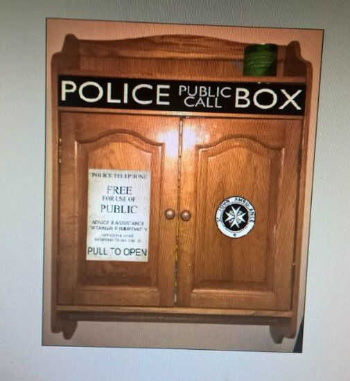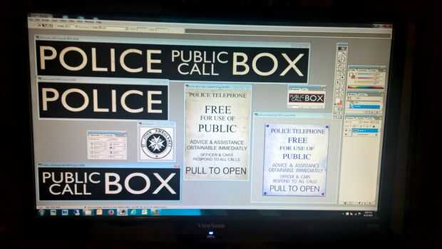 Tomé algunas medidas ásperas del gabinete en su actual estado y decidió que gráficos se usan. He rastreado internet buscando imágenes y había estrechado hasta la caja de policía encabezado de imagen en la parte superior, el público utilizar signo sobre la puerta izquierda y la ambulancia de San Juan de la puerta derecha. Las ventanas tendrían que esperar para un proyecto independiente.