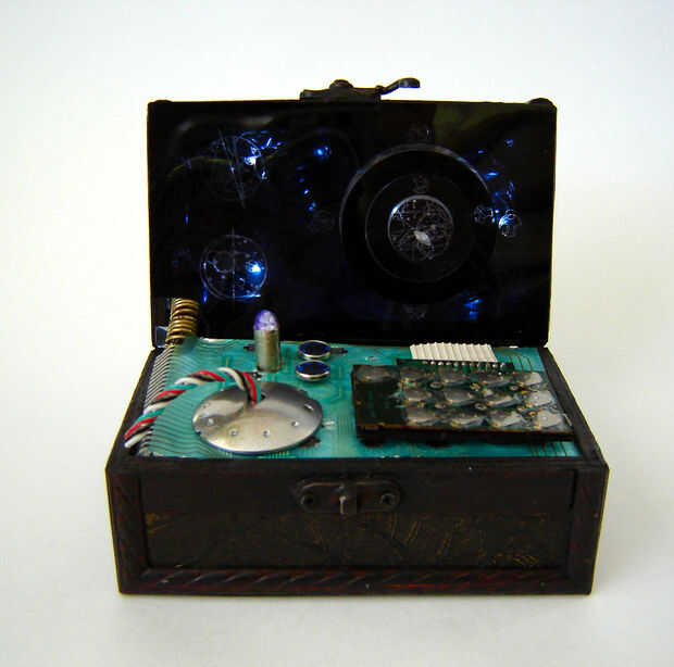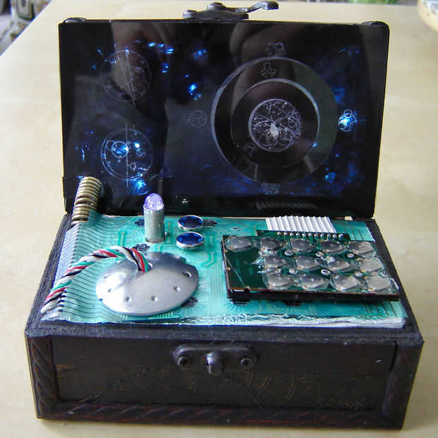he hecho bastantes reloj instructables relacionados últimamente y me parece que cuando estoy trabajando en un reloj me da una idea para otro (en este caso a tener una casa llena de relojes). Así que la última idea que llevaba era hacer un back lit reloj de escritorio. La idea fue incubar por un tiempo y supongo que mientras ve un episodio de Dr. Who que decidí que quería utilizar el texto de Gallifreyan (porque se ve tan genial). Necesitaba un contenedor de clases para mantener el reloj y encontré una caja de pequeño tesoro en el almacén del dólar. Pongo la cara del reloj en la tapa y y poner algunos bits al azar de la chatarra en la base (muy parecido a lo que usted encontraría en la