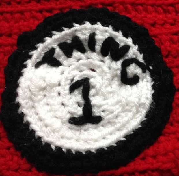 Ronda 7 y 8: 1 SC en cada ª vuelta, 8 saliendo de FO redonda, cola larga para coser apliques sobre cubierta de pañal