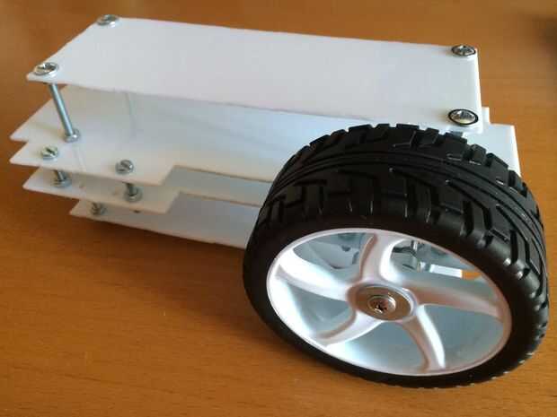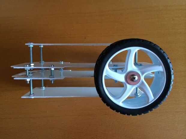 He probado la rueda y el montaje del motor en una sola capa y luego he montado todos juntos. Es muy importante comprobar en cada lado y en un montón de posición la altura entre cada capa, esto aumenta la alineación y balanceo y aumenta la precisión del robot.
