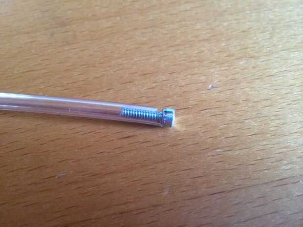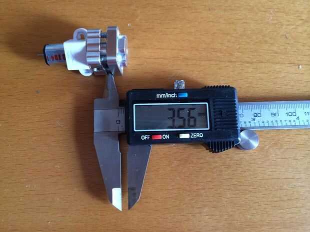Yo he montado adaptador de volante con el eje de tornillo con tornillo (cabeza hueca) dividir con un espaciador con un pequeño tubo de plástico del mismo diámetro del tornillo.