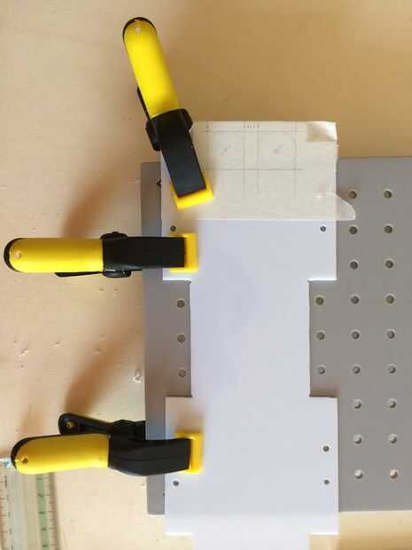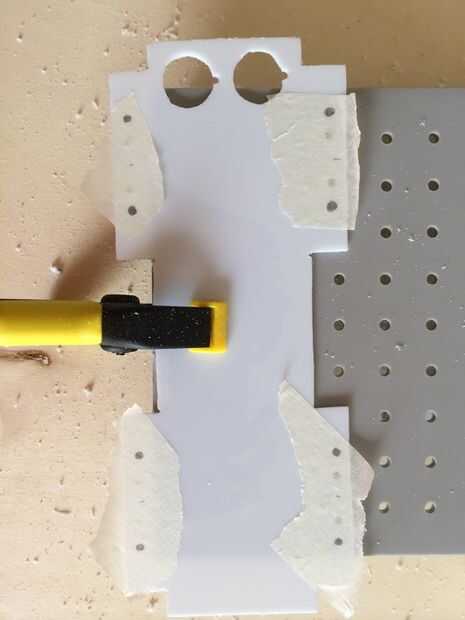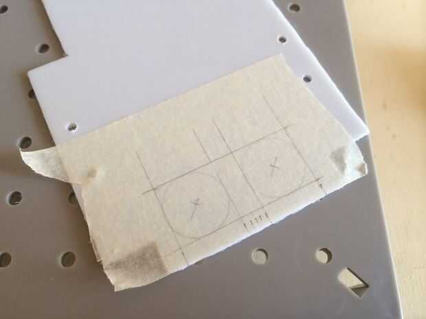 Con la ayuda de alguna cinta de enmascarar he trazado algunas líneas para ayudarme a cortar el plástico y y los más importantes agujeros en el plástico.