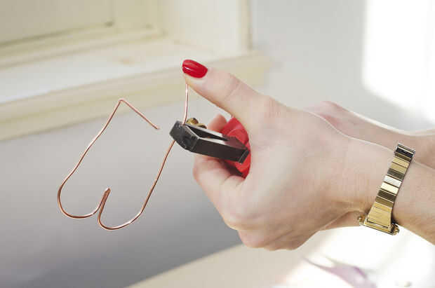 Ter hoogte van de 5 cent munt vouw je aan de onderkant van het draad een rondje. Que op: de ene kant buig je naar voren en de andere kant naar achteren. Klusje lastig.
