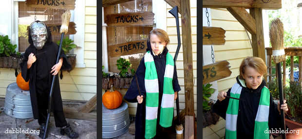 Y por supuesto, algunos toques como una escoba y una marca tenebrosa y una varita...