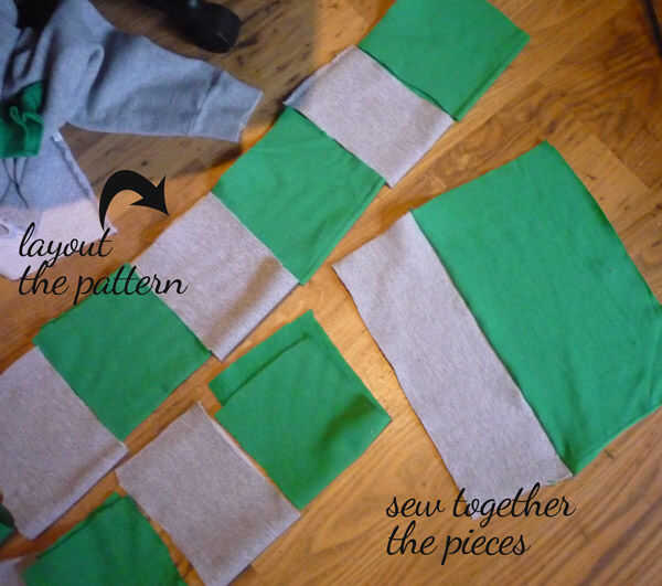 Corta las sudaderas en una serie de coincidencia de rectángulos, sobre 6 en altura y doble el ancho que quieras tu bufanda final ser.