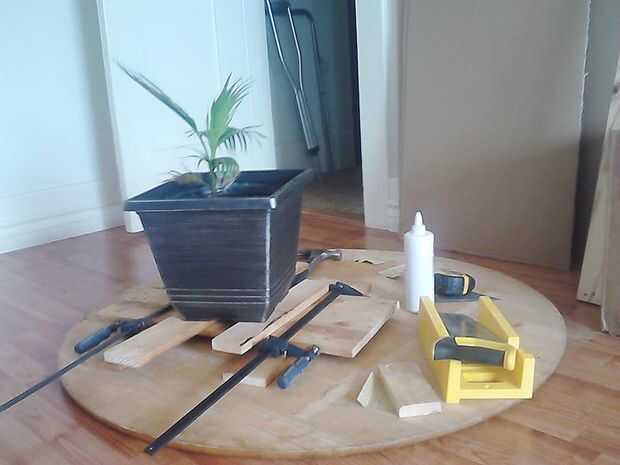 Esto es un poquito más técnico. Configurar el ángulo derecho para empezar. La mariquita es mi cenicero. uso reclama plataformas de madera y un poco de ayuda de mi planta "roadie" los tornillos son pre perforado y L metal fue utilizado por debajo de. El ángulo era el lápiz que se describen a continuación y el sobrante se monta en el riel posterior hacia abajo para mantener la plataforma de deslizamiento. 100% de corte de madera de longitud fue utilizado, correcto ángulo! Y alardear por es el nivel a una copa de vino. El elefante rosa se llama "kisser" y me ayuda con las plantas. Subir desde este teléfono ha sido un problema, Vota aquí!