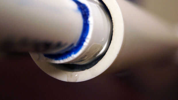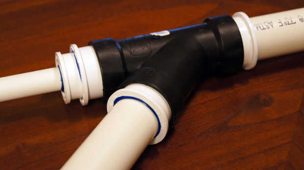 A continuación, pega la tapa en el 1-1/4 de 6", luego pegamento pvc dentro del buje. No pegar el buje en el conector ABS Wye. Aquí es donde se acumula material y necesitará ser capaz de sacar al pan a través de su material.