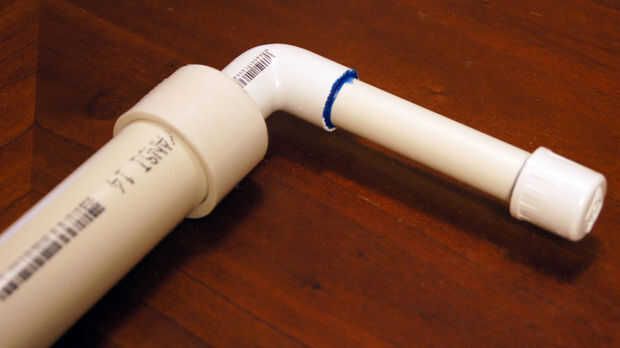 Comience por pegar el montaje de la manija, la tapa del extremo, codo y 1/2 slip para conector de rosca de 1/2. No pegar la tapa en el montaje de la manija para el 1-1/4" pvc como usted querrá ser capaz de desmontar para limpiar hacia fuera o reemplace el sello.
