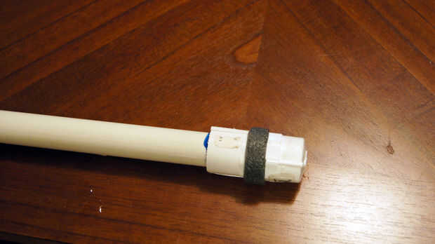 Una vez hecho esto, inserte el montaje de la manija donde el sello está en el 1-1/4" pvc como hizo en el montaje seco.