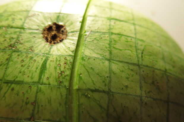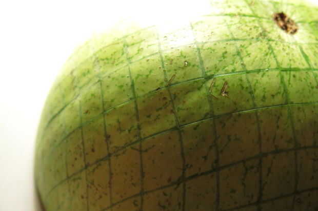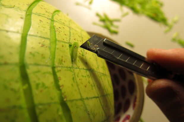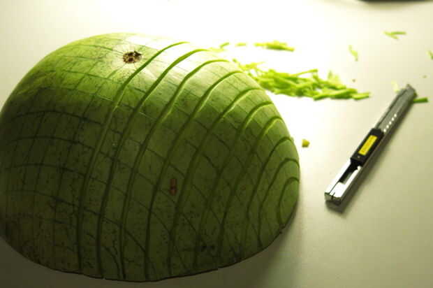 El motivo de estos cortes son dos: 1 para permitir la humedad se escape a través de los huecos creados en la capa externa retentiva de agua cerosa y 2 para permitir que el melón de agua ser doblada de adentro hacia afuera.