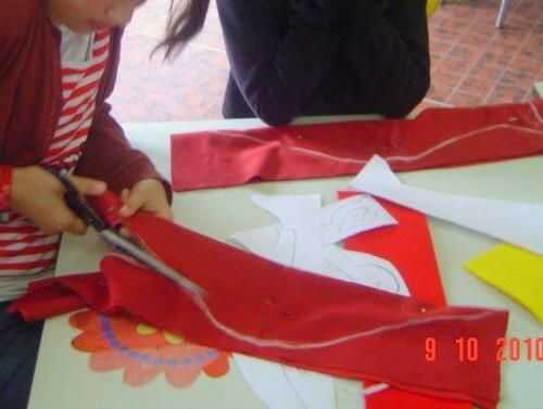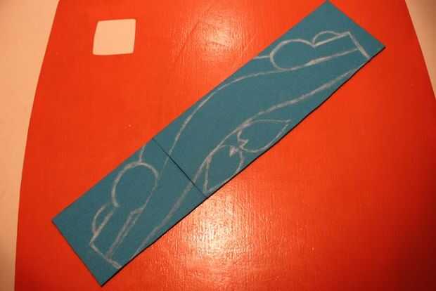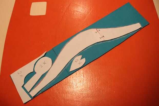 Cortar las líneas negras de la gran plantilla y cortar las piezas más pequeñas. Coloque todas las piezas en el fieltro de tal manera caben ellos al dos veces, en la parte pequeña. Funciona mejor cuando la parte grande en el centro longitudinalmente, con el lado hueco tocando el borde. Si tienes problemas para acoplamiento en, puede separar la pierna del frente ala combinación en un ala y una pata delantera (sólo necesitará hacer coser un poco más más tarde en). Marque al piezas con tiza y recorto.