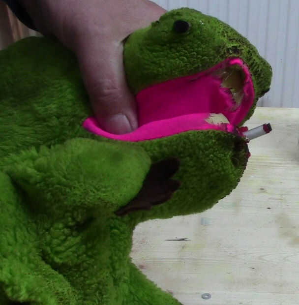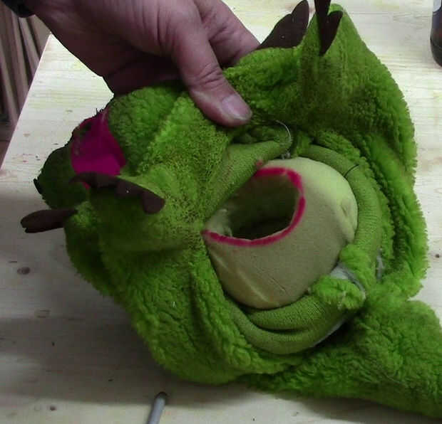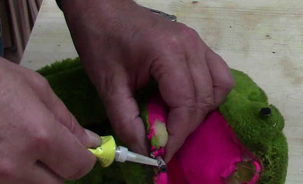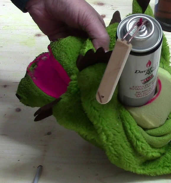 Llenar la cabeza con espuma (tal vez de un viejo colchón) y cortar un agujero grande suficiente para introducir el gas puede en.